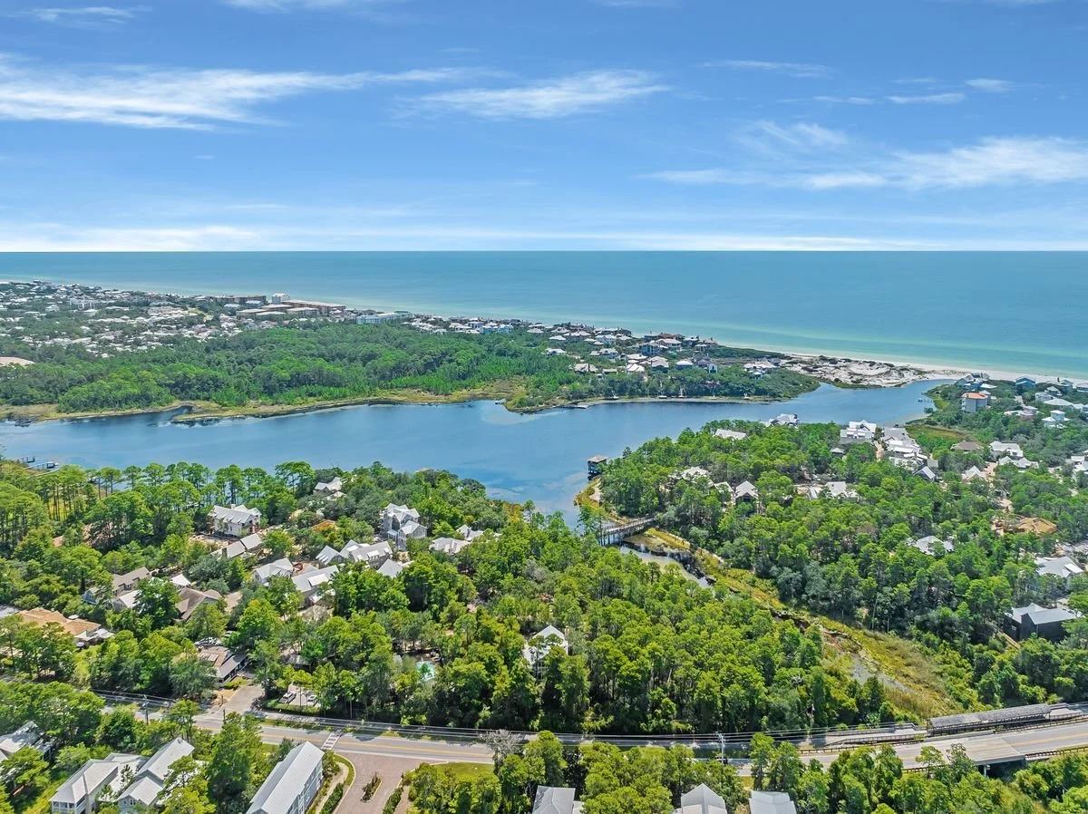 This architect-designed home is a nature lover's paradise surrounded by established trees and multiple trails all within the neighborhood of Draper Lake Coastal Village. Located at the quieter end of 30A near unspoiled Blue Mountain Beach, it is close to Draper Lake, a rare coastal dune lake with a dock in its own conservation area. The home delights from the outset with an attractive covered front porch and ample parking. Inside, the open floor plan is enhanced by natural oak flooring, textured walls and daylight pouring through multiple windows and doors. A long breakfast bar creates a boundary between the living area and the kitchen. White cabinets, stainless appliances and a farmhouse sink make this a practical yet attractive area for cooking and entertaining.